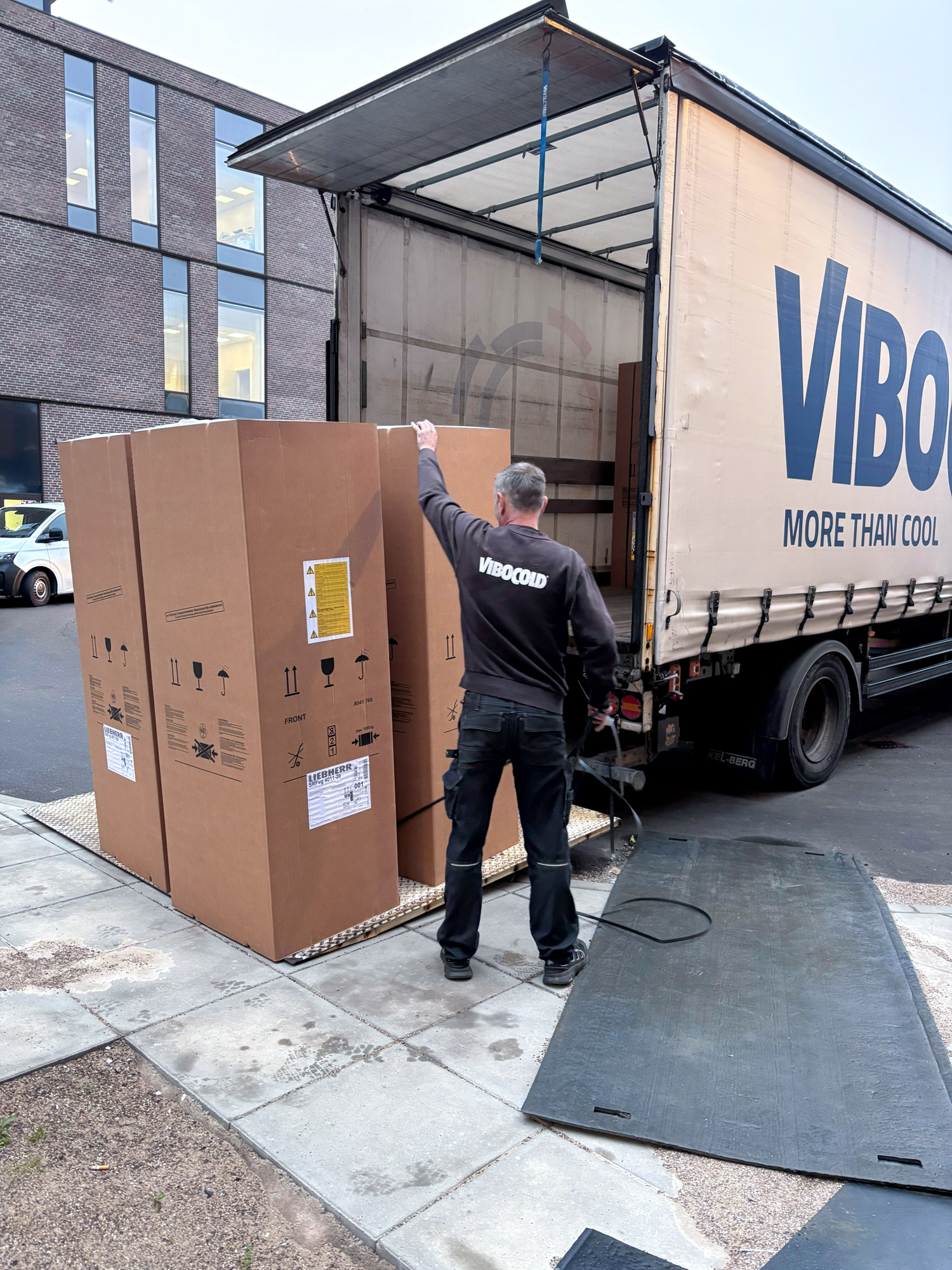 Hos Vibocold modtog vi alle 66 Liebherr medicinkøleskabe på vores lager. Her håndterede og ombyggede vi 40 af dem, så de fik venstrehængte døre. Samtidig blev alle skabe udstyret med fem ekstra trådhylder, så de passer perfekt til brugen i medicinrummene.