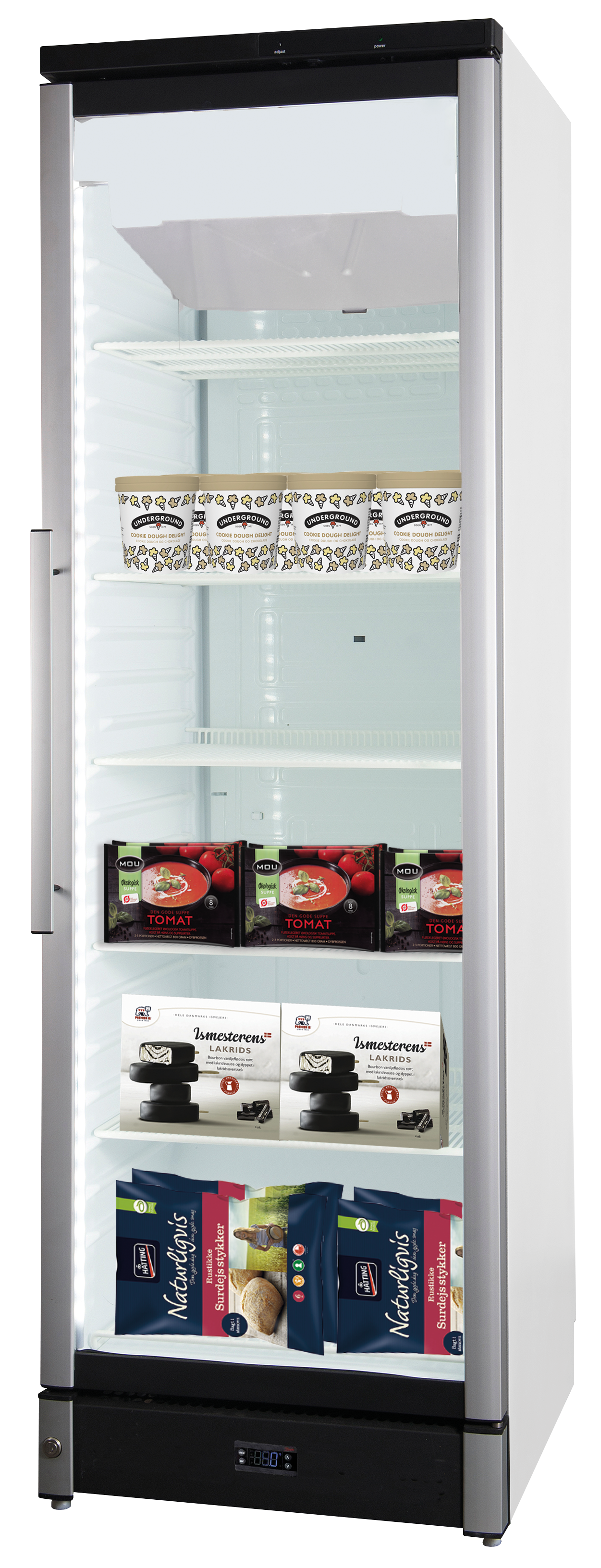 Den ventilerede nedkøling sikrer en stabil og ensartet temperatur i hele skabet. For at minimere temperaturudsving, temperaturforskelle og risiko for rimfrost er det en god idé at fordele produkterne jævnt på hylderne.