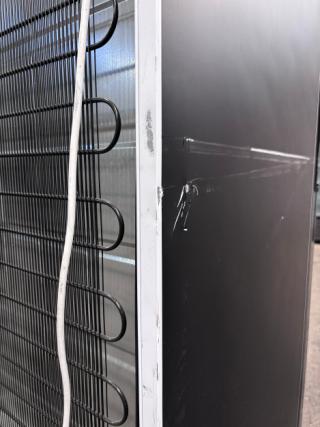 Dette displaykøleskab er oprindeligt med en hvid finish, men er blevet opgraderet med sort folie på både siderne og lystoppen. Siderne har fået nogle ridser under håndtering, hvilket afspejles i den ekstra lave pris. Køleskabet har aldrig været brugt og fungerer helt perfekt.