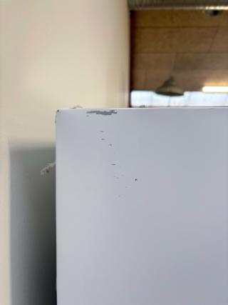 Mindre buler på venstre side samt ridset hjørne øverst på venstre side af møblet.