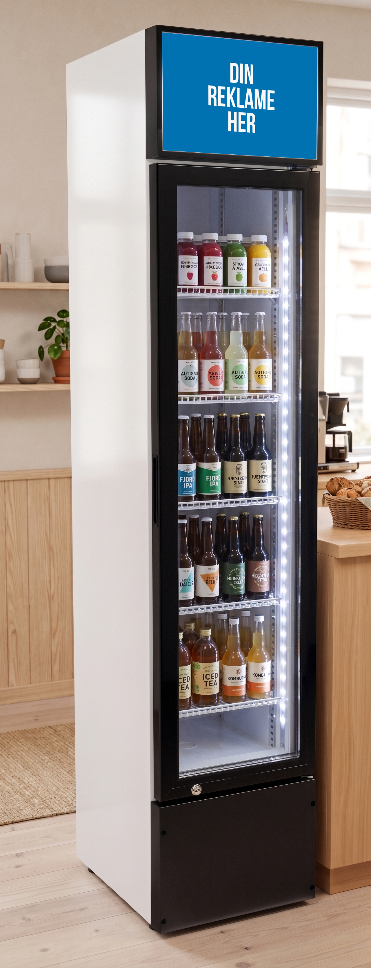 Bliver dine produkter præsenteret på indbydende vis, er der langt større sandsynlighed for, at kunderne handler. Derfor kan det godt betale sig at sætte fokus på eksempelvis sodavand, iskaffe eller energidrik ved at placere varerne i et displaykøleskab som dette.