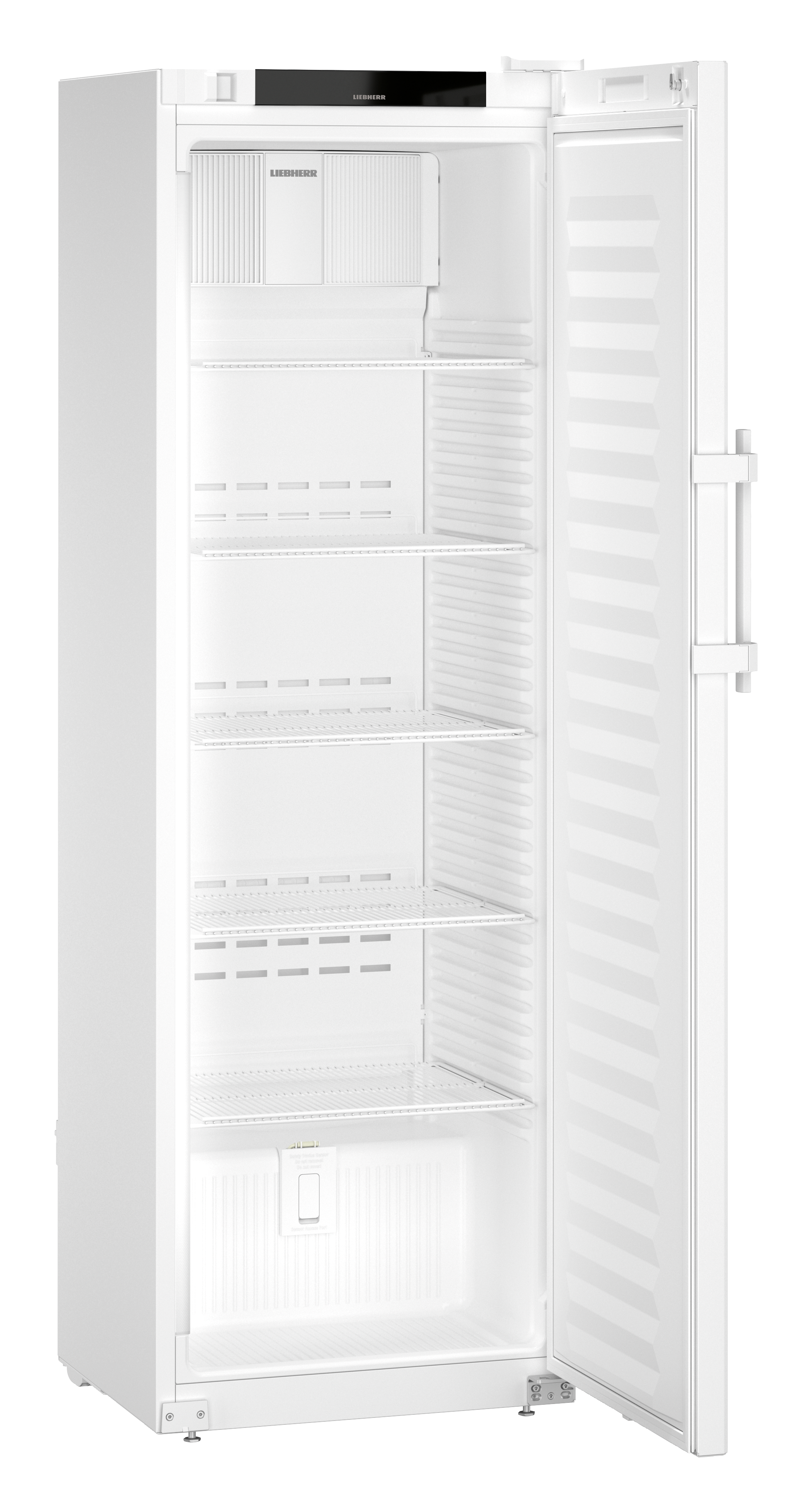 Hvidt laboratoriekøleskab med temperatur- og døralarm