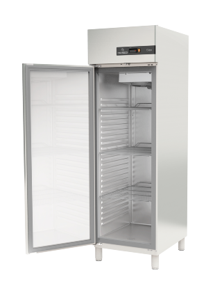 Den ventilerede køleløsning med tvungen luftcirkulation bidrager til ensartet temperatur i hele skabet. Når døren åbnes, stopper ventilatoren, hvilket hjælper med at begrænse unødigt kuldetab. Den digitale temperaturstyring understøtter en stabil drift med optimeret afrimning og giver ekstra tryghed via alarmer, bl.a. ved åben dør. Afrimningsvand håndteres via automatisk fordampning, så hverdagen bliver mere driftssikker og mindre tidskrævende.