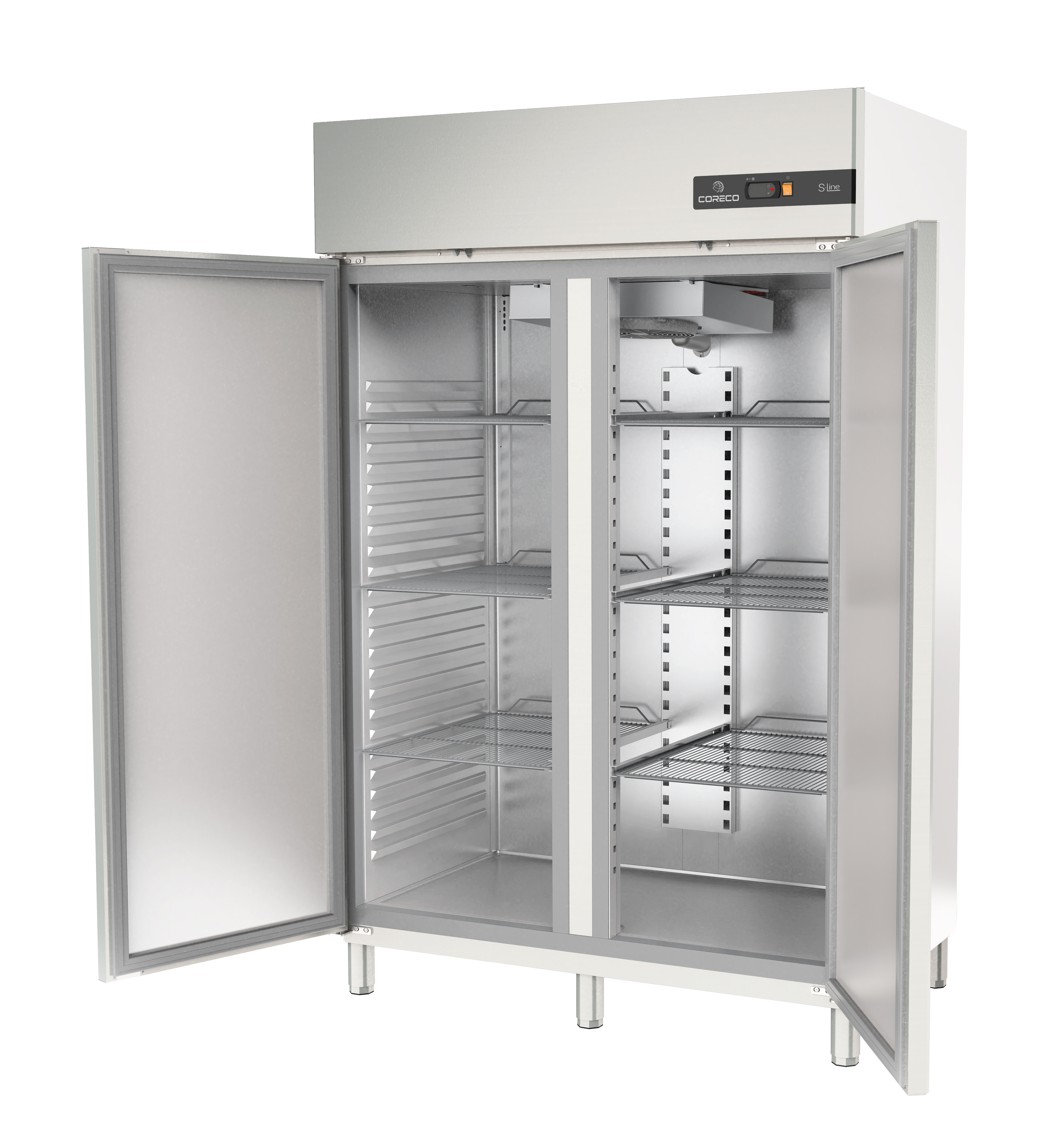Et lagerkøleskab skal holde temperaturen, også når dørene åbnes ofte. Skabet er designet til stabil og jævn køling med luftcirkulation, så temperaturen fordeles ensartet i hele rummet. Samtidig bidrager de 2 selvlukkende døre til at begrænse kuldetab i en travl service, hvor man hurtigt er inde og ude af skabet mange gange i løbet af dagen.